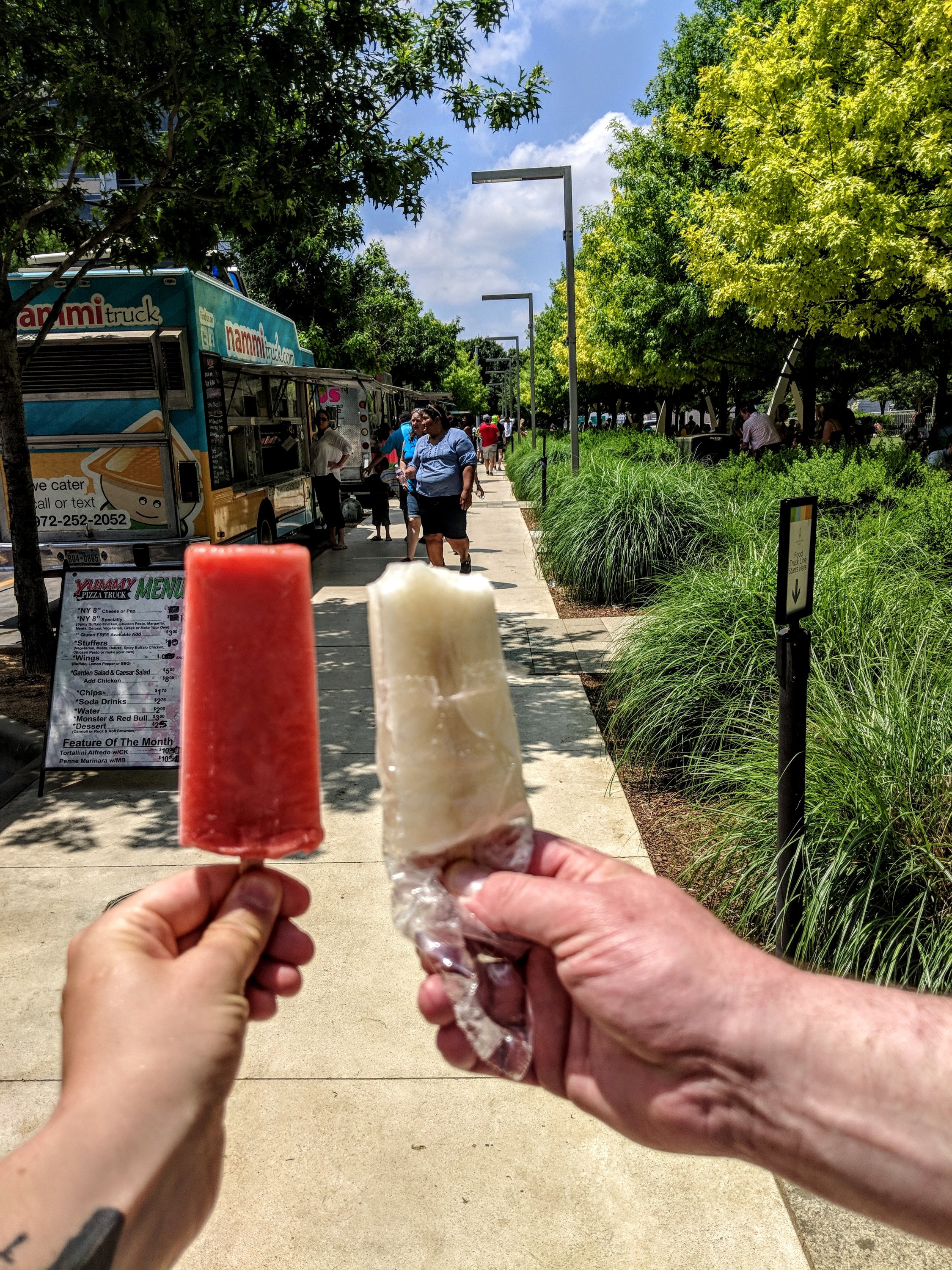 I love it when a City really uses it’s space to create fun walking/running areas. Klyde Warren Park is the ultimate goal of a green City. Built over a freeway it’s 5.2 acres of parks with food trucks lining the street on the side of it. You can get lovely ice cream and street food snacks from here while you enjoy the fountains and shade in the heat of the day.
