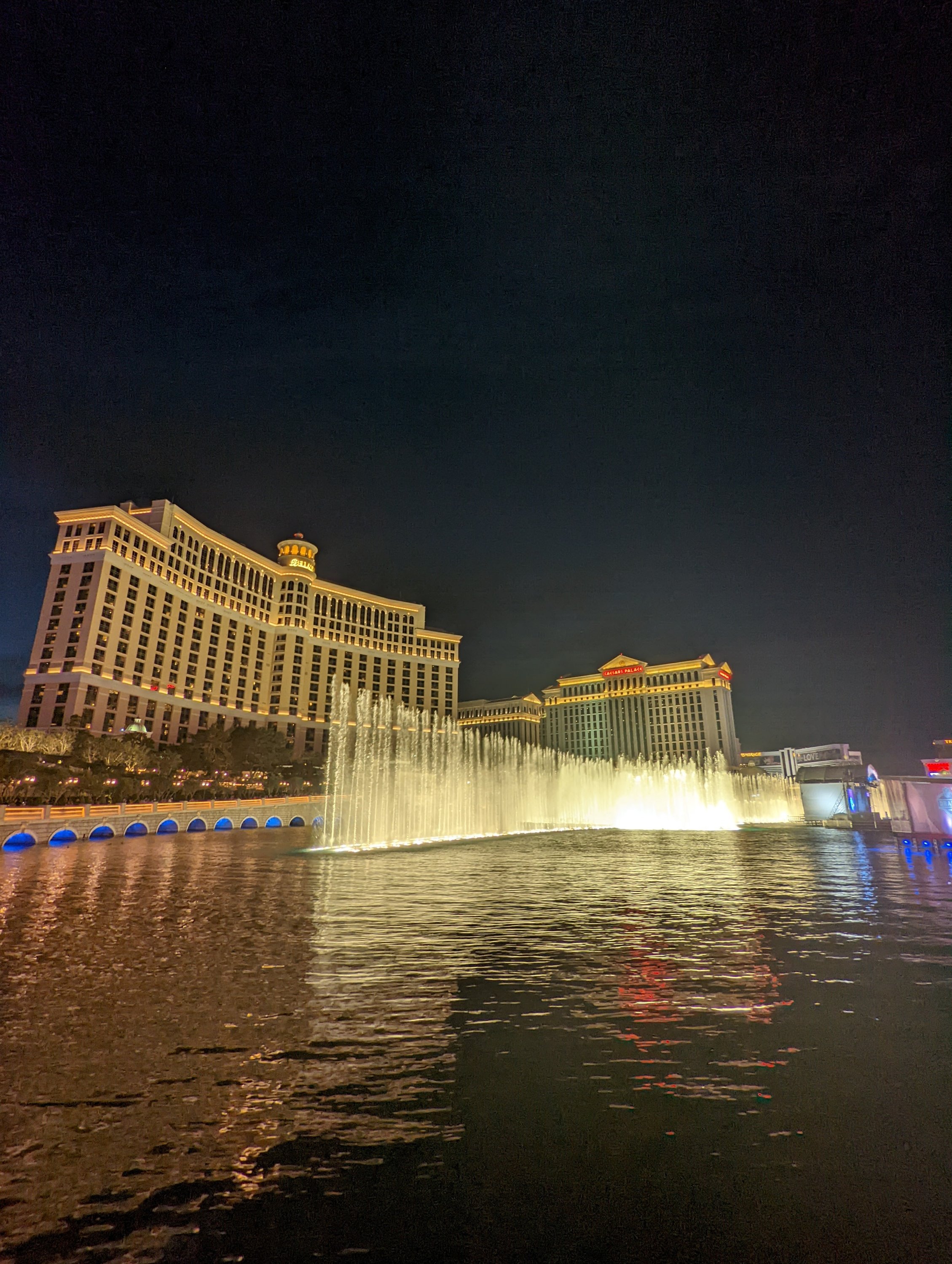 I grabbed a quick bite in Nacho Daddy, mainly chosen becasue of the name. Then wandered up the strip towards Paris hotel, being greeted by a replica Eiffel Tower. After being mesmerized by the lights and the views I crossed over to check out the Bellagio. The famous Bellagio fountain is right in front of the hotel. More than a thousand fountains dance to a music and light show, It’s pretty iconic and they go off every 15 minutes between 7pm and midnight.
