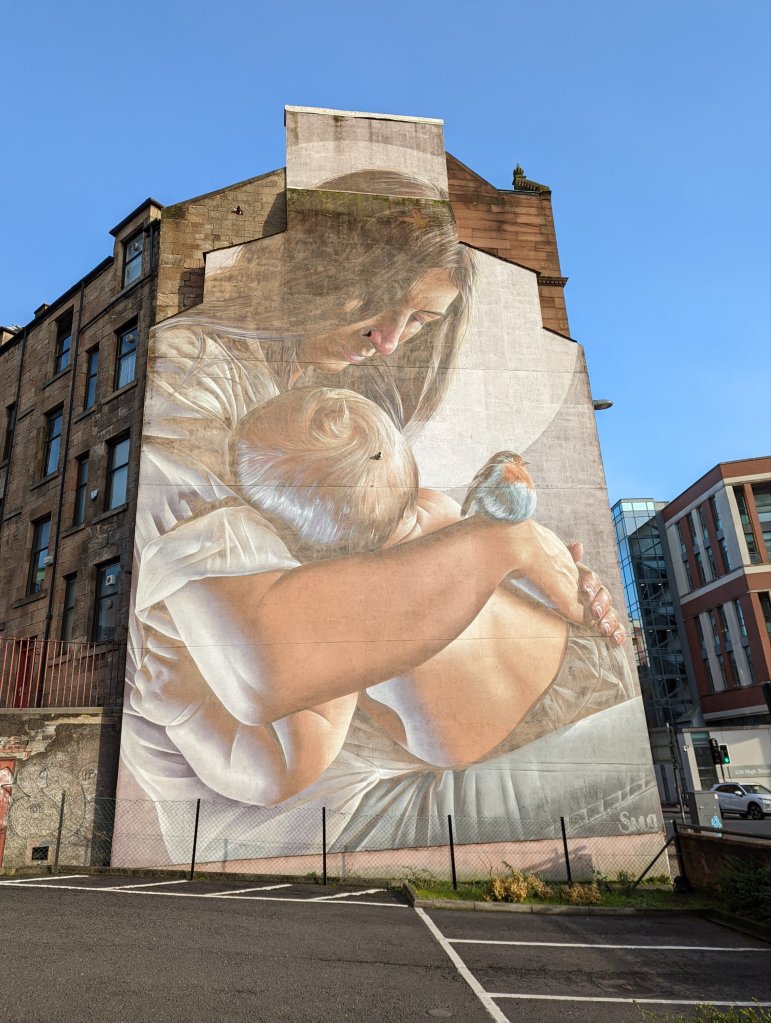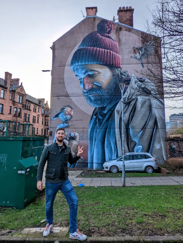 One of my favourite things to do in a city is check out the street art, and there was one in particular I had wanted to see for a long time. St Mungo was a missionary in the 6th century and was the founder and patron saint of Glasgow. There’s a superb mural of him just off High St east of George Sq and that’s where I headed!