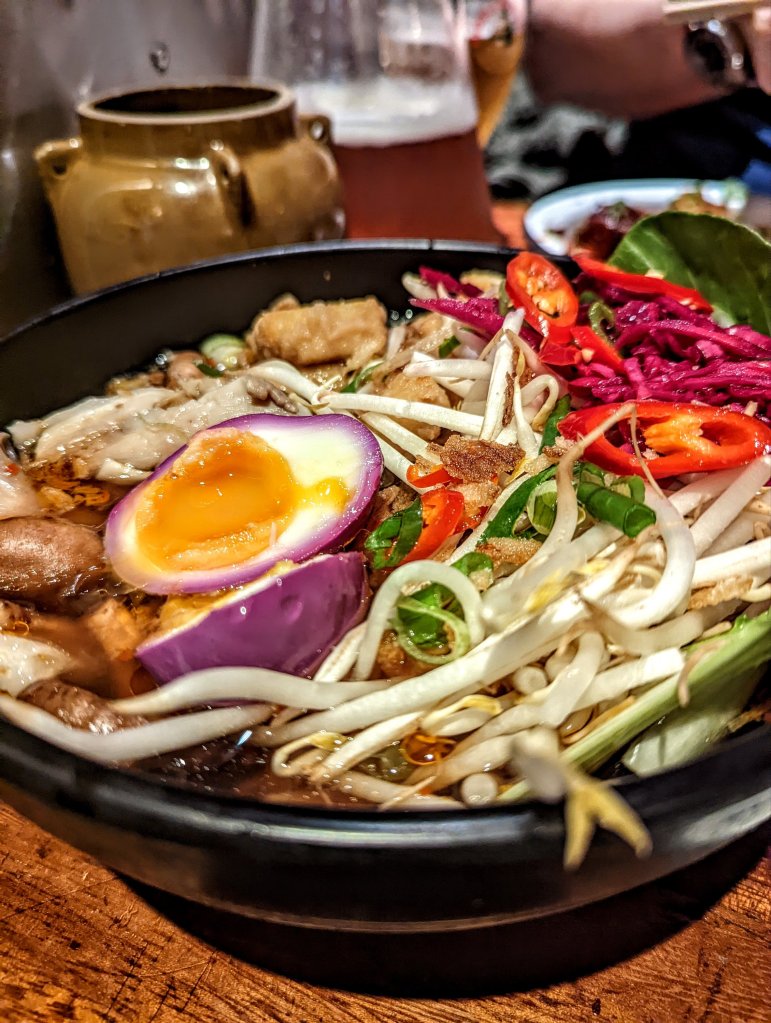 I needed a break after that so I picked up a Greggs and then headed for a nice cocktail, passing by a really cool spaceman mural. I stopped at the Corinthian, it had an amazing interior and the cocktail was delicious. I finished up and headed back to Byres Rd for some more Asian food at Kimchi Cult. Now this was next level, the place is tiny but the food was so good, I love anything kimchi related.