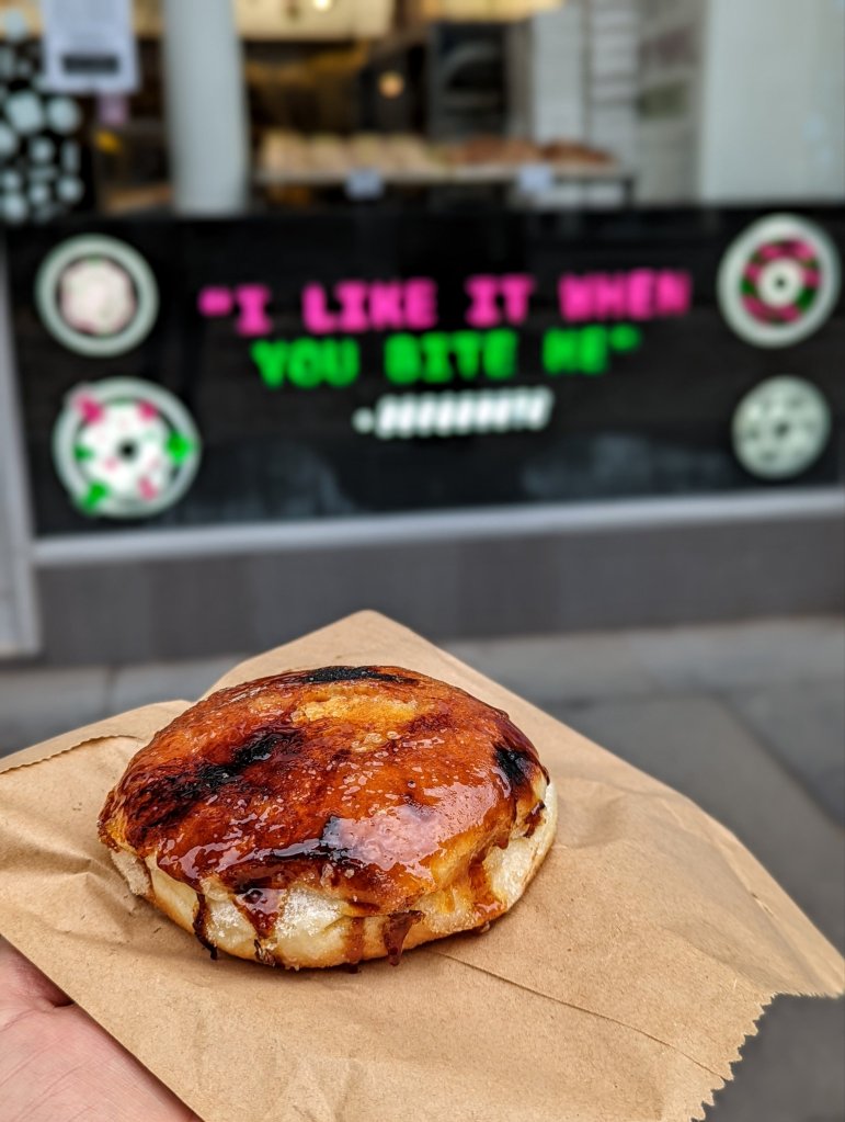 I had a good little buzz on as I wandered through the streets. I stopped off at this fun policebox for a quick pic and then headed over to Tantrum doughnuts for the most unreal creme brulee donut! My plan was to head out to the dock area along the river. So a quick google told me to take the train to Exhibition centre.