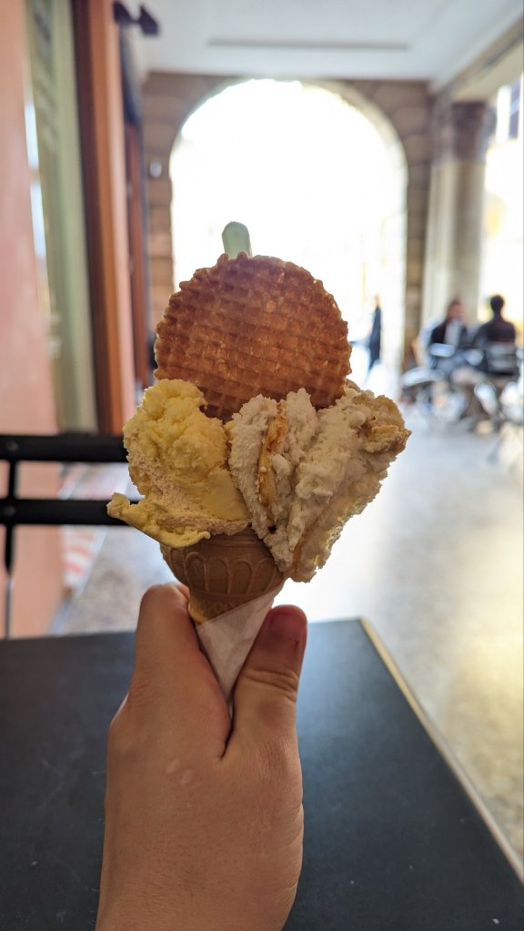After climbing down I needed a rest, so I wandered over to a Piadina spot and recharged with the delicious local flatbread stuffed with veggies and blue cheese. Then I did whatever self respecting tourist does in Italy, Gelato! I found a gelateria and scoffed down a scoop of ricotta and fig and a scoop of custard flavour. Delish!