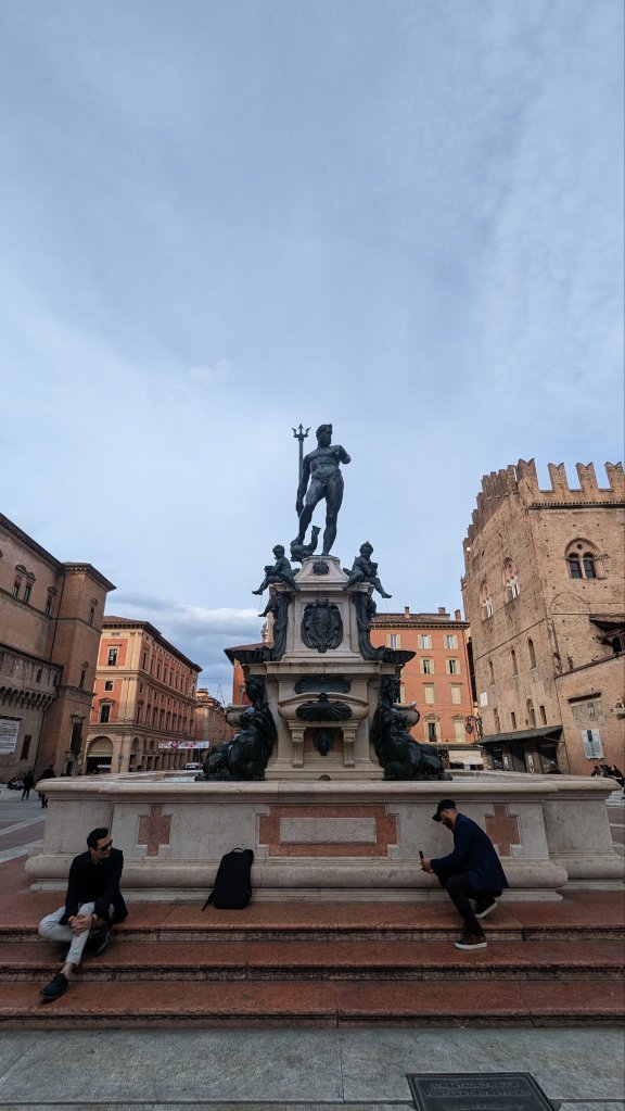 Now I had filled the energy bar back up it was a short walk to Piazza Maggiore, this square has everything. There’s the Porta Magna della Basilica di San Petronio, the Palazzo d’Accursio and the Palazzo dei Notai. My favourite part was the fountain of Neptune. Talk about daddy vibes, and don’t get me started on the women squeezing water out of their boobs!