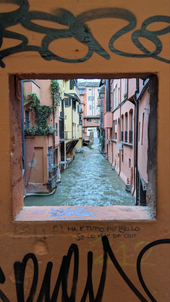 Constructed in the middle ages it’s a small stretch of canal that hints at a bigger network of waterways. Bologna once had more than 37 miles of canal, but the majority has been built over.