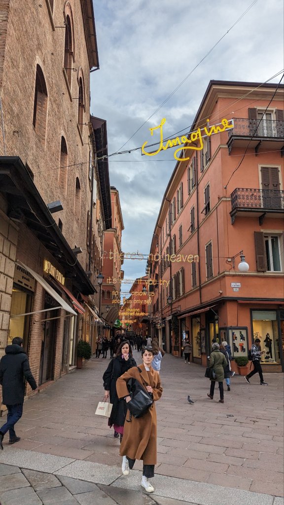 I had some time to kill, and I spotted a neon Imagine sign and was drawn to it. Upon further inspection I realised there was a whole street with the lyrics to Imagine by John Lennon. Absolutely incredible and totally unexpected. I walked the length of it before turning back to see my last Google maps pin.