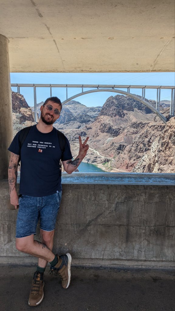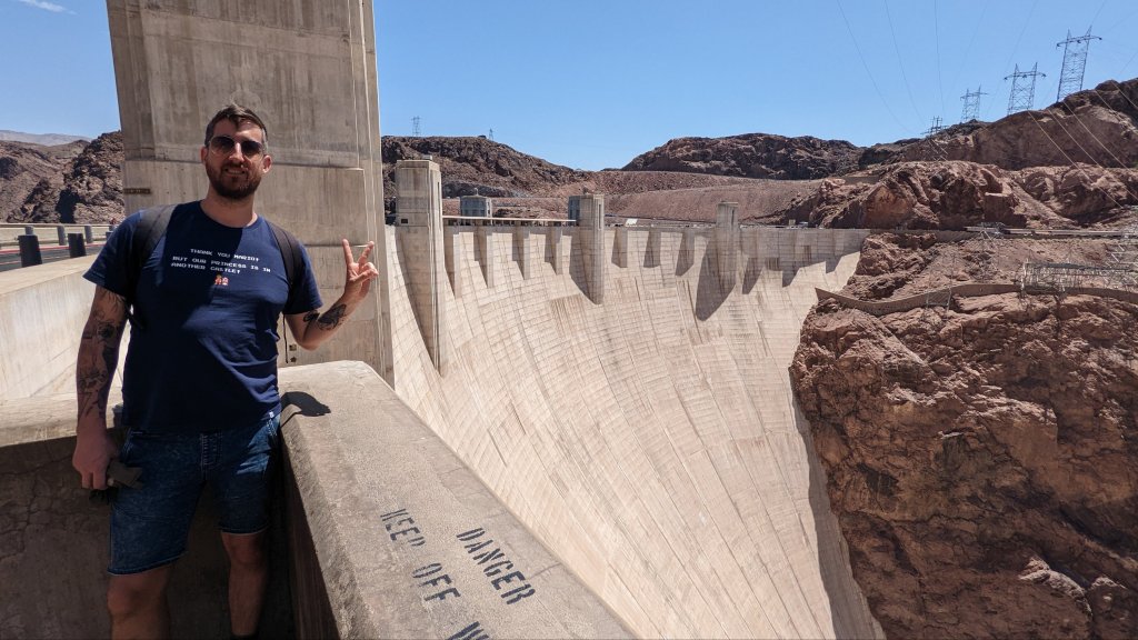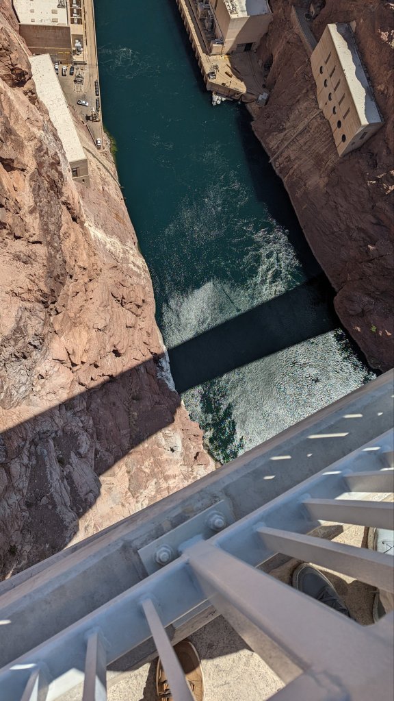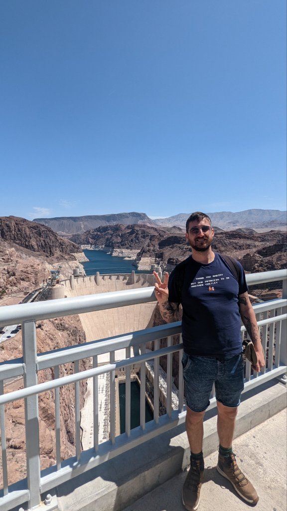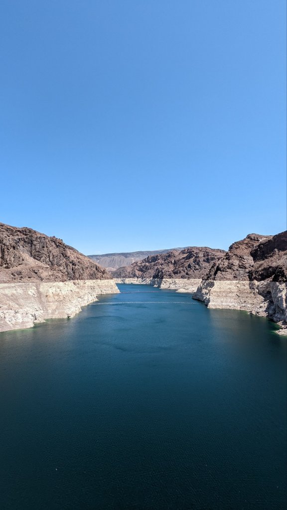 It was fun to grab a couple of pics with the state signs, first I parked up and walked over the bridge looking over the dam. Then you could park up and actually walk over the dam, it was incredible! Next I took a little detour to park up and check out Lake Mead, it’s just so vast, you could see for miles. Although you could tell the water was super low, this area of the U.S. has been experiencing a really long drought.