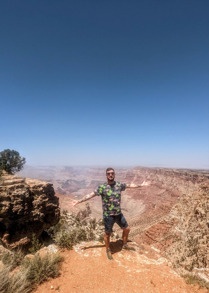 Parked up I headed straight to the rim of the Grand Canyon. It’s crazy because you don’t really see it until you emerge from the trees and it’s suddenly there. It truly is breathtaking. I could feel the excitement build inside me as I gazed into the distance and barely able to see the other side of the canyon.