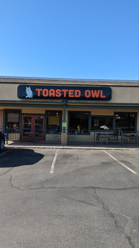 In the morning I awoke to views of snow capped peaks and fir forests, was this the same Arizona I’d spent hours driving through?! A quick Google found me a breakfast stop called the Toasted Owl. It was hilarious, a diner filled with owl memorabilia!