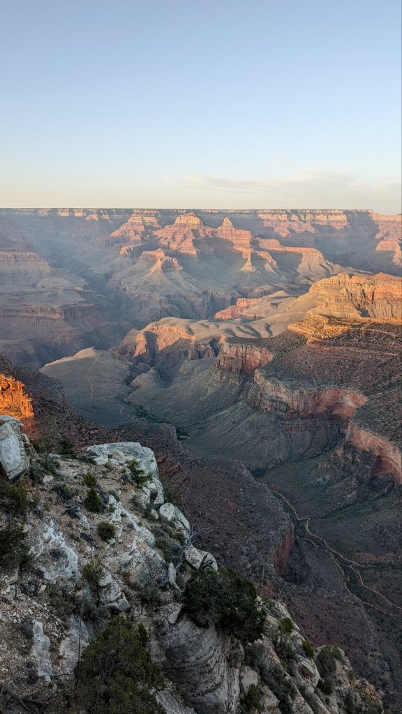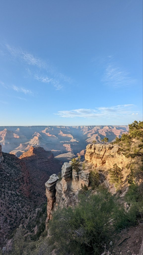 I decided to head off and stop wherever it looked interesting. My first stop ended up being Shoshone point which was incredible! You walk through this gorgeous pine wood before emerging onto a rocky point with perfect views of the Grand canyon. I’d highly recommend this spot, there were only 2 other people the entire time I hiked.