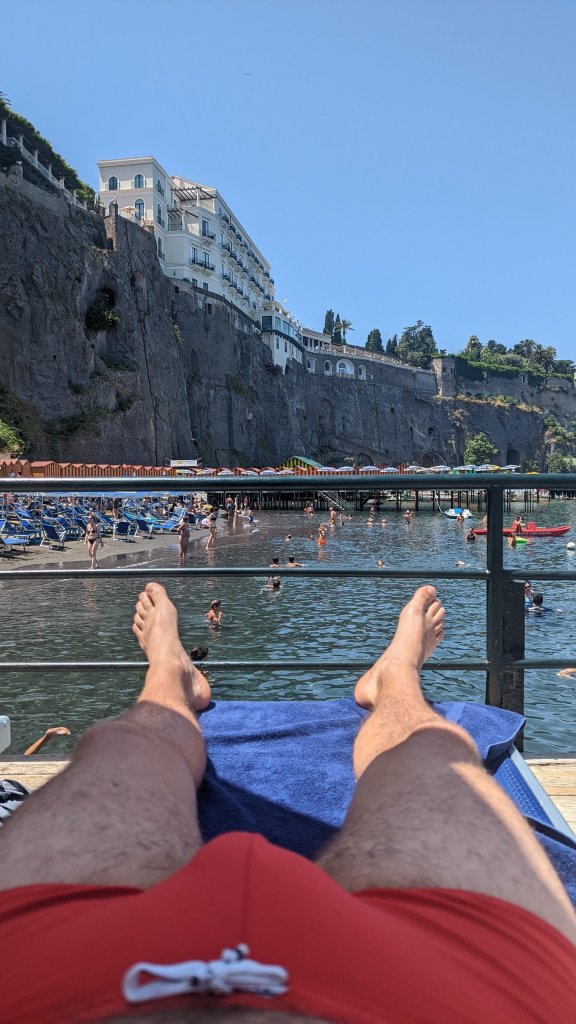 In Sorrento it’s no different, I rented a deckchair down on Marameo beach club. It was a beautiful day and the water was crystal clear. There’s a pretty good café to grab a beer or pizza etc and it was pretty reasonably priced.
