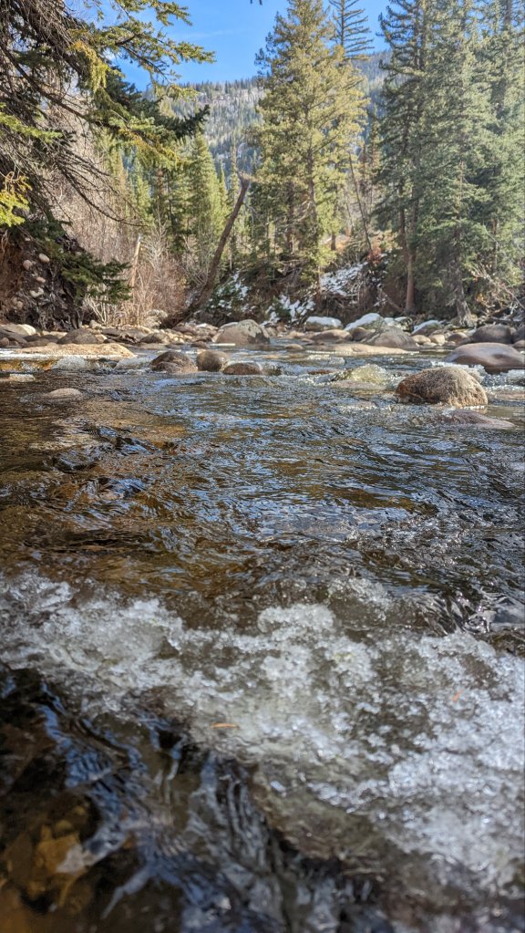 We drove back into Steamboat and walked along the main street, it’s your typical outdoorsy place with lots of shops selling hiking/skiing gear and other knick knacks. The springs running into the river are interesting though, so we wandered along the bank of the river for a little while before turning back for food.