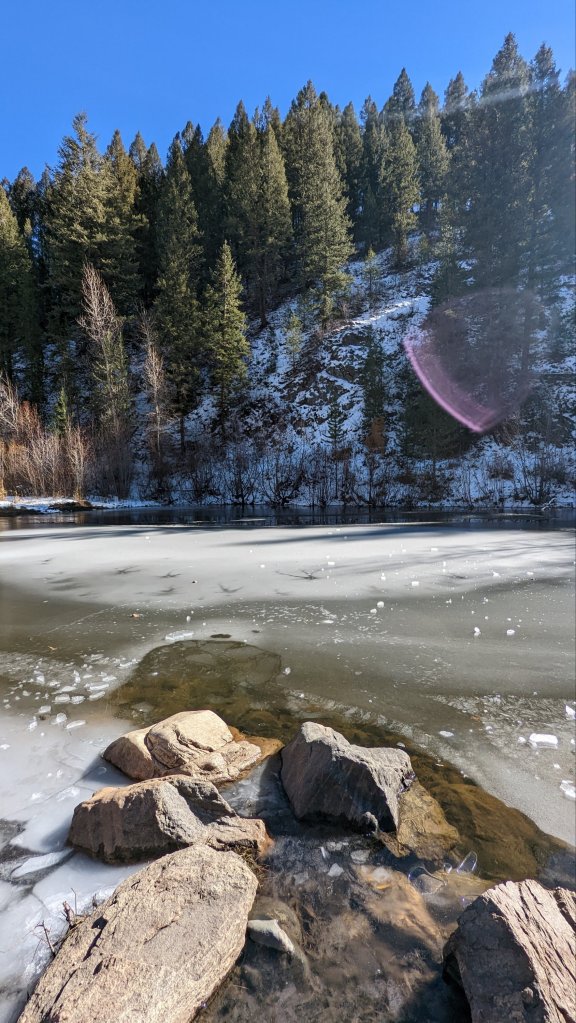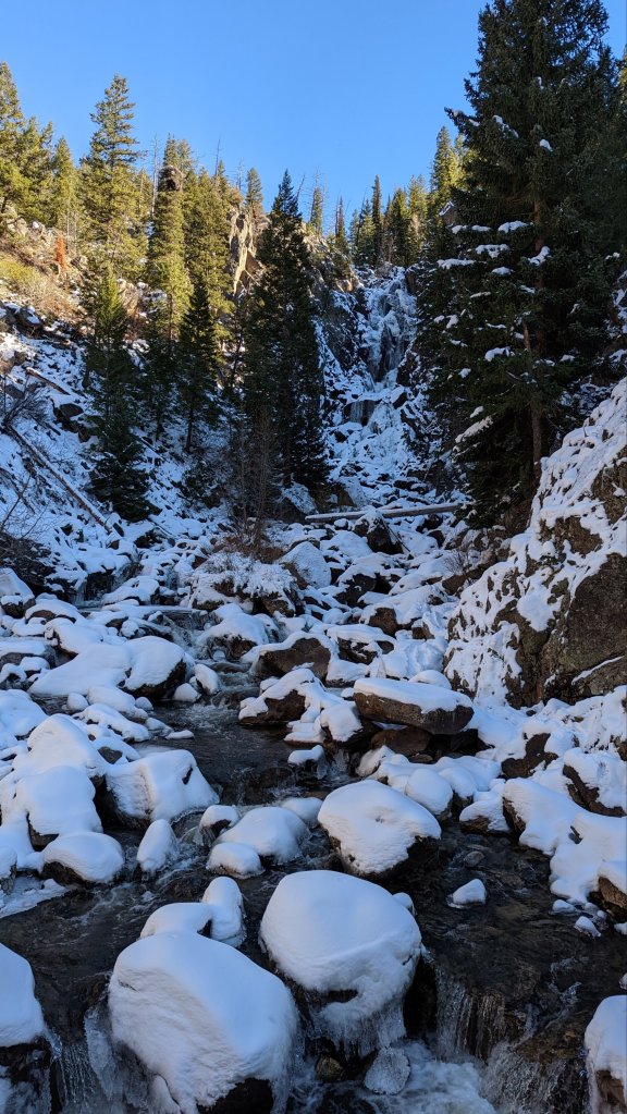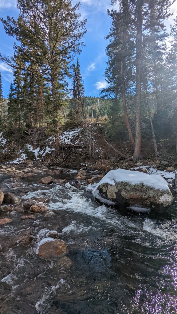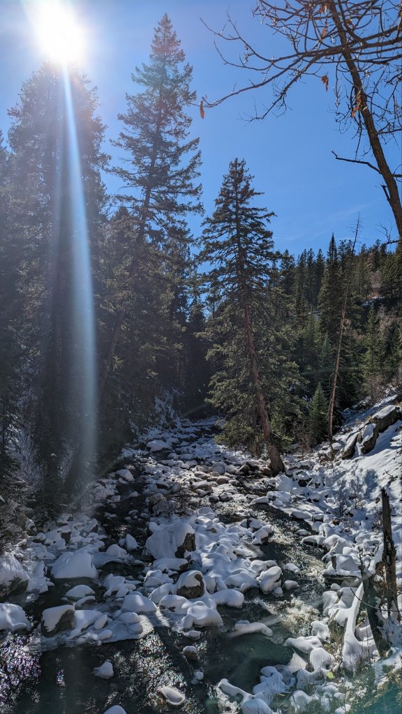 Since there was no skiing, we decided to do a few hikes. First was a nice gentle one called Spring Creek trail. Taking us from the town up to a beautiful frozen lake. It was October and there was so much snow in the shaded areas, and none where the sun got it! It was great to get out and hike, so I was excited for the next stop.