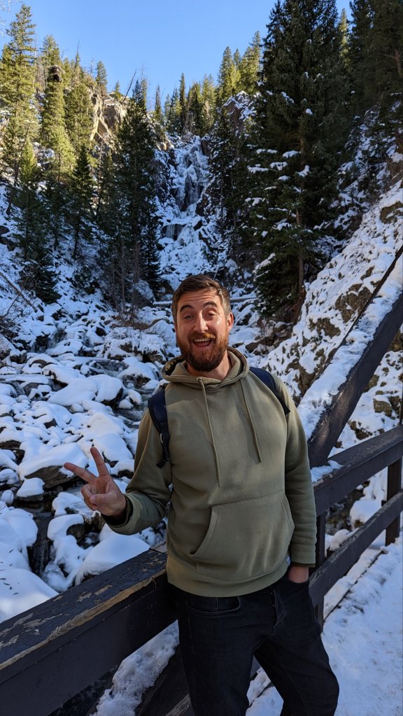We drove up to Fish Creek falls which was amazing, the falls were all frozen over. There’s the cutest bridge crossing Fish Creek and a chipmunk even popped up to say hello. The walk down from the carpark was a bit steep but manageable with good footwear.