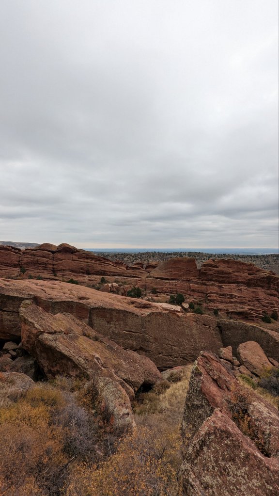 I followed the map back to the Scotsman trail, and up the Buckskin Charlie trail to do a full circle. The views were just changing constantly while huge rocks reared up before me. One named the Sleeping Giant and another called Grey rock, the only one not a vibrant shade of red.