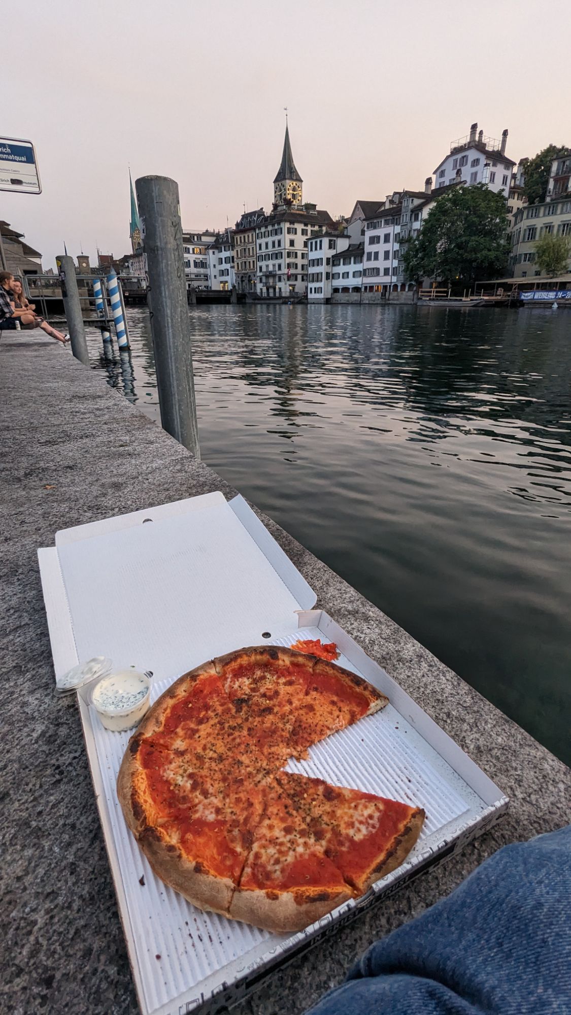 I finished the evening off with a takeout from Pizza Nation, sitting on the edge of the river. I had a swan who was very interested in my pizza, even trying to grab the box at one point! But it was a great way to relax reflect on a fun holiday.