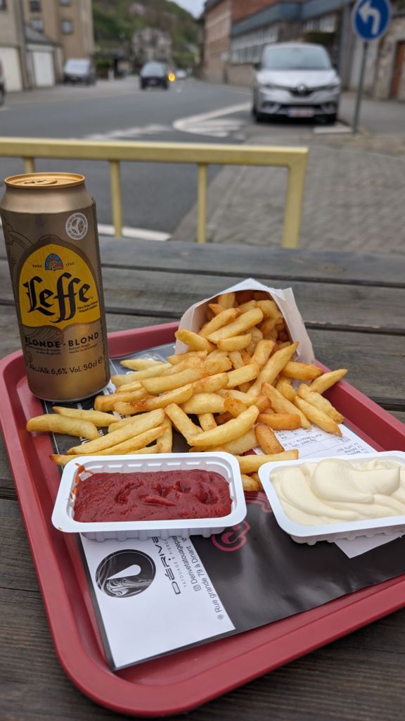 In the evening I sat by the river basking in glorious sunshine and drinking a local beer, Croisette de Dinant. I was so relaxed watching the boats go up and down. On the way back to my hotel there was a cute little cafe where I got fries and another Leffe. The quintessential Belgian meal.