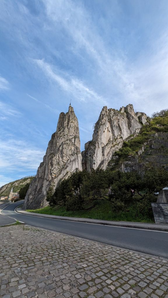 I spent a couple of nights here doing just that. Spending half a day walking along the Meuse river south past Rocher Bayard, an impressive rock formation. I ended up at Walzin Castle, perched up on a sheer rock face. I wandered back to Dinant through cute farming villages and across wooded hills.