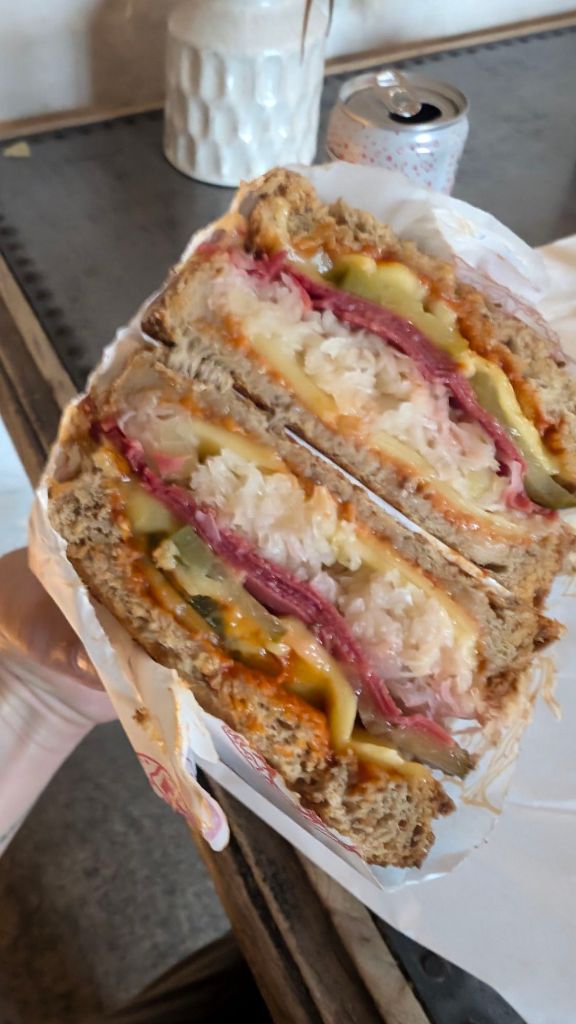 After a wet and wonderful walk, we headed to Cobbles Collective for their viral Sandos! It’s such a great spot to get lunch at with a few different food options but the Sando place was amazing! Check out the pics below, they also had great vegan options.