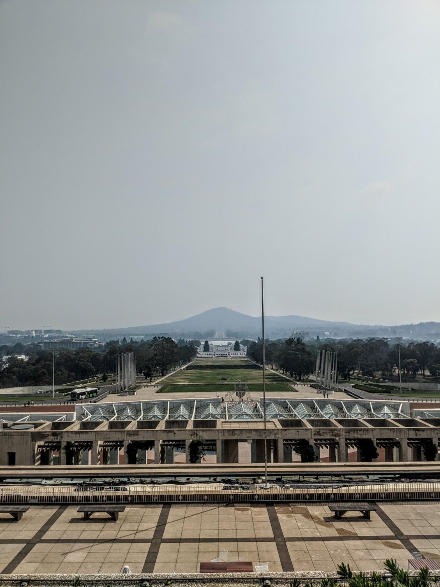 The view was still hazy, but it was still really interesting, with a straight look down ANZAC parade to the lake, and the fountain was now on!